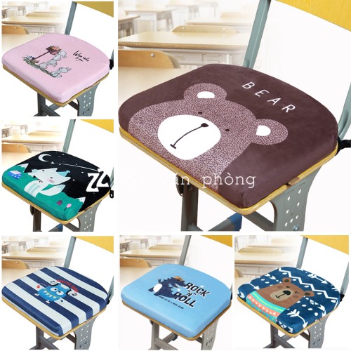 Gối lót ghế (đệm ngồi) cao su non với kiểu dáng thiết kế chuyên dùng cho các loại ghế học sinh, ghế bàn học trẻ em siêu êm, nhiều hình dễ thương, có dây buộc và hạt chống trượt chắc chắn.