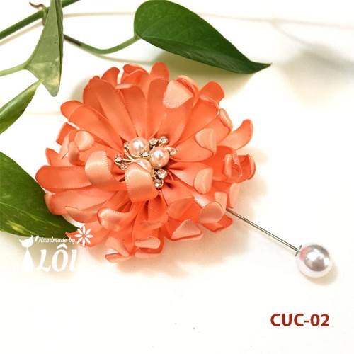 Hoa cúc cài áo váy handmade làm từ ruy băng nhập khẩu với số lượng cánh nhiều cho bông hoa trông đầy đặn tròn trịa và nổi bật. Sản phẩm sử dụng được cho nhiều loại áo (áo vest, áo phông, áo sơ mi...), nhiều loại váy từ công sở tới thời trang.